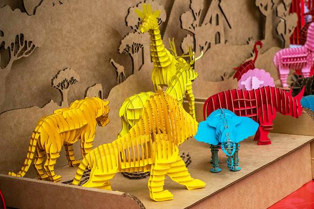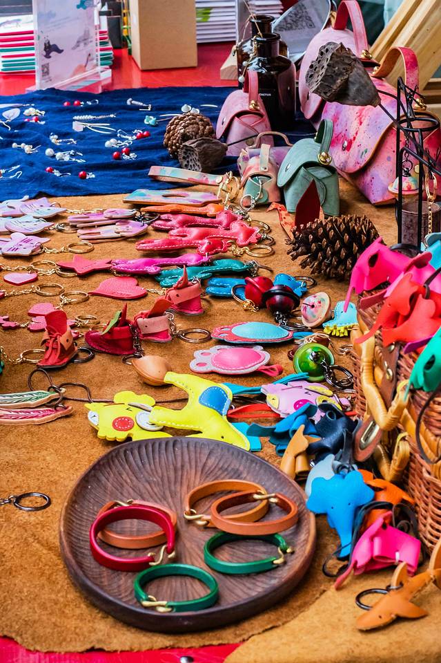 街面上的卖货摊位,除了有仿制的古代茶盅、酒杯、小碗之类的,还有很多现代风格的手工艺品,耳钉、皮质的手机挂件、钥匙扣、手镯,手工都很精巧。木纸片手工立体动物拼图,可以买回家自己去拼成品,蛮赞的。