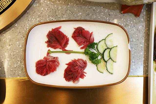 极品水牛鲜毛肚,量也是十足的,只需煮九秒,入口爽脆,口感不赖。