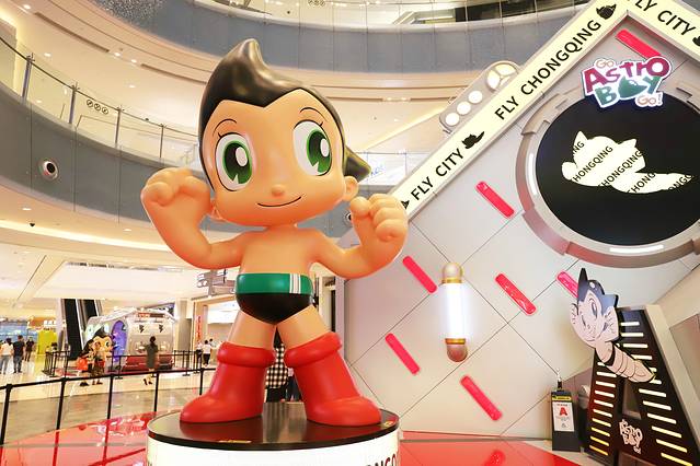 打卡点中最耀眼的就属阿童木雕塑了,大大的眼睛,举起双手,感受到一种力量,很是可爱。