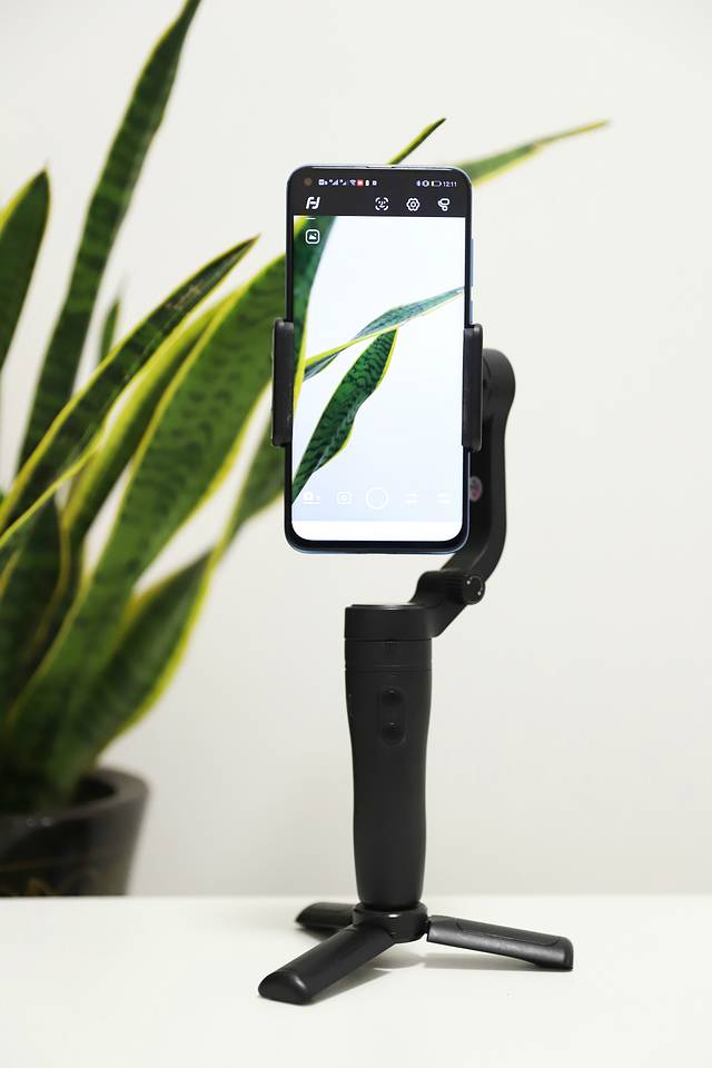 我选了不显脏的黑色,第一次使用前,需要下载飞宇app,里面有使用教程,学习下就会用了,操作起来挺简单的,拧松所有的卡子,打开开关,手机就自动转到水平位置,喜欢拍竖版视频的,可以按两次转换竖版模式,拍摄过程中,手机会随着方向的转动也一起转动,拍出的视频还真的很稳。