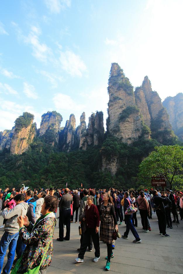 走完十里画廊,下一站就是天子山。从十里画廊到天子山需要上山,搭乘百龙天梯上山之后再换乘环保车就到了天子山。