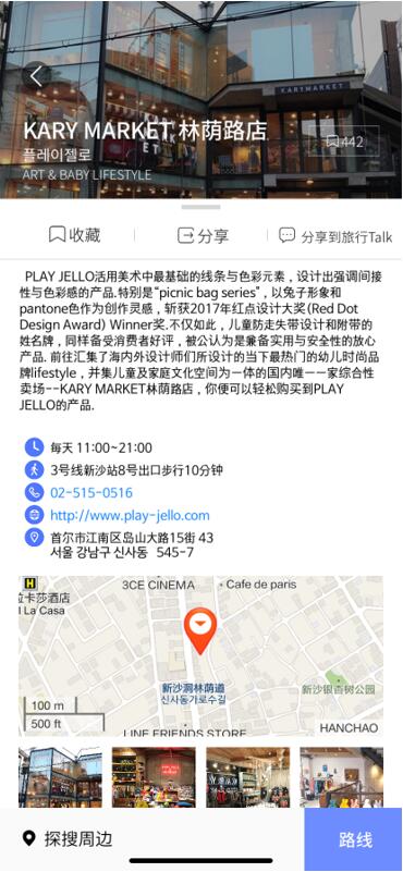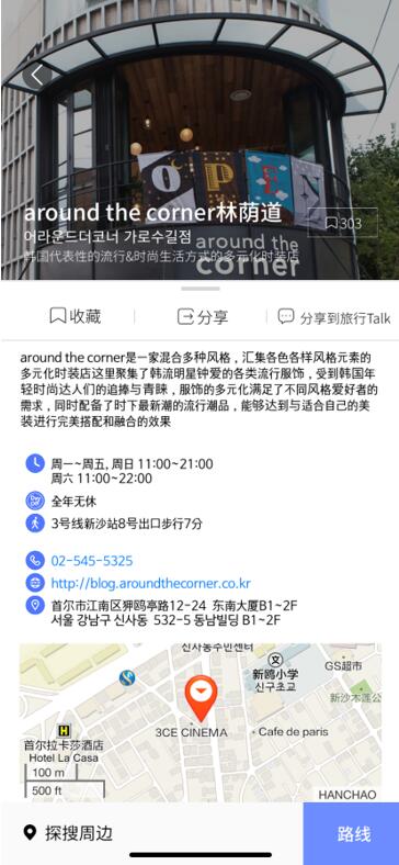这边这个有一家非常适合逛街的买手店,一楼男女,二楼女装,负一楼全是男生的地盘。我们去的时候打了三折,最低也要打七折,而且女生的服装超级好看,是很多韩国小众设计师的品牌,设计的很多特价格也不是很贵,非常适合追求独特时尚的女生们来购买。下面我附上这家店的地图,大家可以直接这个手机应用,跟着自己的位置,来寻找这家店。