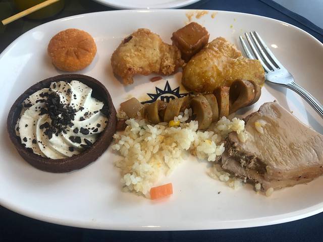 自助餐 什么都有。而且超好吃。你也不用买什么酒水券了。自己上这里来喝。全天供应。只是不同时段供应的饮料不一样。