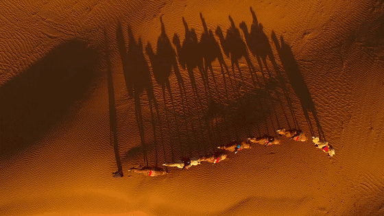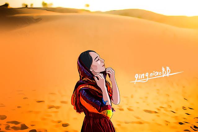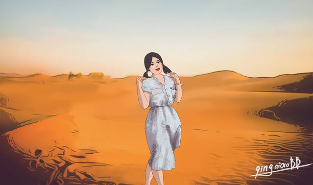 广袤的大漠,沉寂的沙海。夜里有无尽的寂寥,可是一旦太阳升起,它是世间最温柔的床幔。