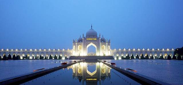 以前的回乡园还是挺好看的(上图借用网图,侵删),尤其是夜景,有一条长长的水渠倒映着“ 银川 版泰姬陵”。