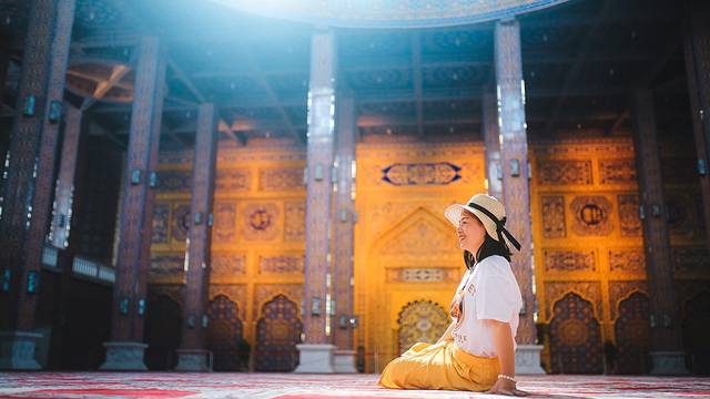 我没有拍清真寺全景,因为,墙壁上正挂着红色横幅,地面粗暴地摆放着“正在维修and箭头”蓝色施工牌……嘿嘿,咱拍局部刷圈照骗。