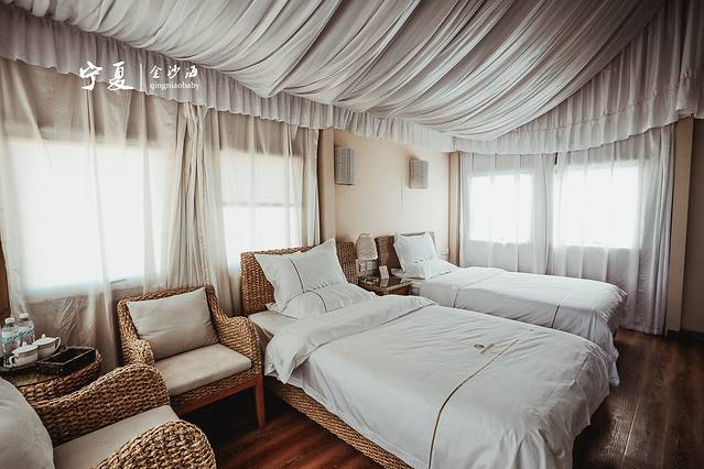 小贴士:沙漠帐篷房的双床标间是可以住得下两大两小的,床是藤制,可以推拉活动,两张床拼在一起足够宽敞,孩子不会掉下去。房间里有热水洗澡,空调电视网络,也有洗澡用的拖鞋和洗漱用品。但是注意开门时风沙很大,尽量少开门,不过每个房间里都备有扫床用的刷子,扫床单上的沙子用。另外沙漠里不乏蚊子,晚上尽量少开门,记得使用电蚊香。