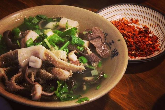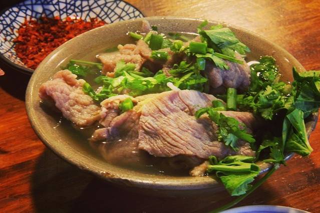 在非常多人的串妹花式冰粉的对面,就是我们大名鼎鼎的乐山翘脚牛肉啦!来乐山,绝对不可能不吃翘脚牛肉,端上来一碗满满的牛肉,再加上一份毛肚,蘸着辣椒面做成的干碟,入口时辣味一下窜至鼻尖,辛辣刺激味觉色香,不愧是大名鼎鼎的翘脚牛肉~