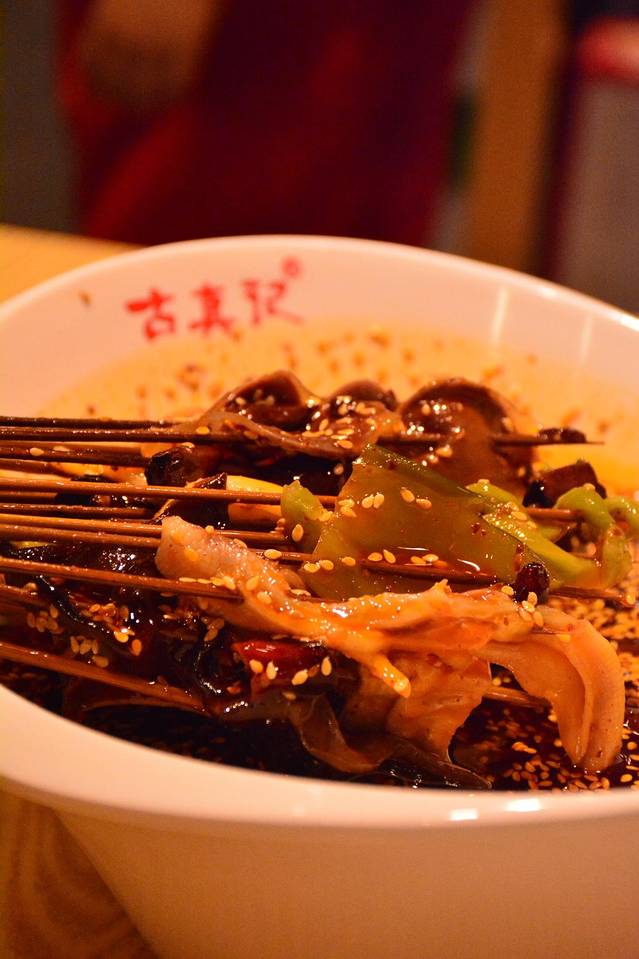 说起乐山,一定不能不提的就是钵钵鸡!虽然现在在全国各地都有钵钵鸡,但是要说吃钵钵鸡的氛围,绝对还是要数乐山!如果到乐山,甚至可以一天三顿,顿顿钵钵鸡~而在我这里,要说吃钵钵鸡,一定要选择的就是古真记啦!