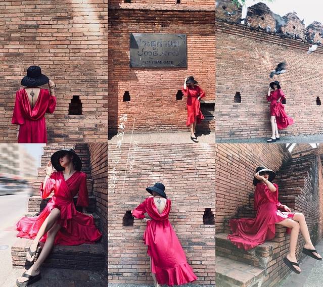 早餐过后去塔佩门拍照,对,我特地买的红裙子和帽子,就是为了塔佩门前拍照的,