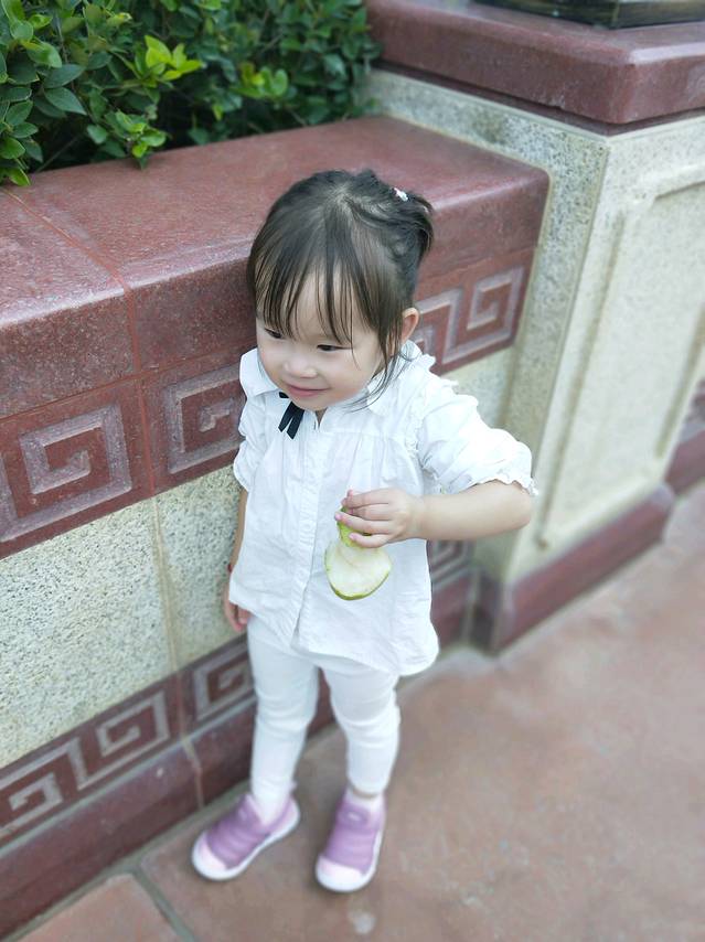 看完出来,爸爸们“神州塔”还在排队。等爸爸的时间里,妈妈们先带着孩子吃点水果垫垫肚子。