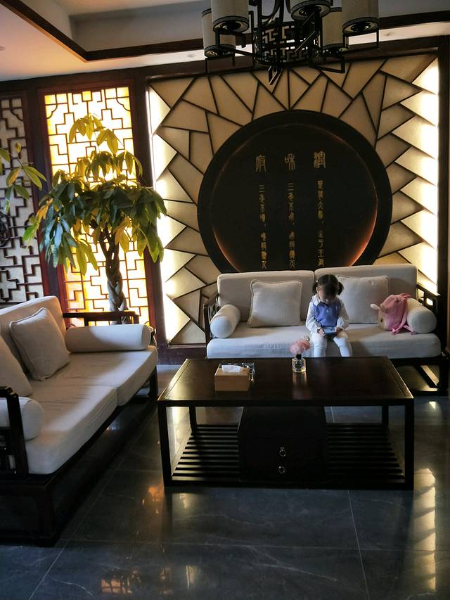 接完孩子放学,从武汉直接导航酒店名过来,车程2小时。酒店位置虽然僻静,可门楼又很显眼。进门就看到身穿汉服的前台小姐姐微笑问好,瞬间感觉自己穿越了。(有免费停车位)