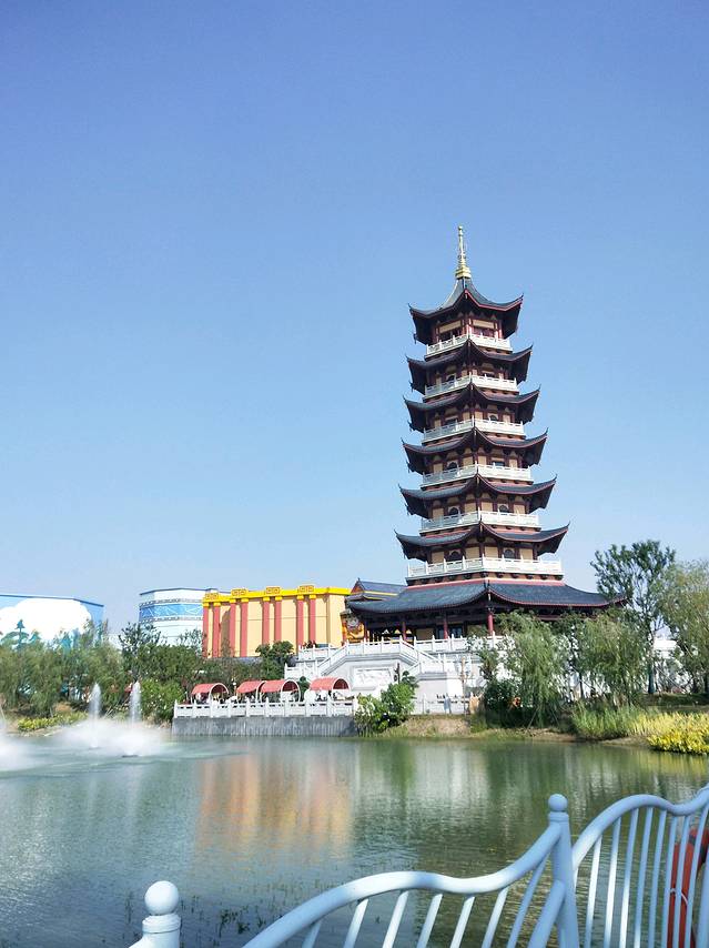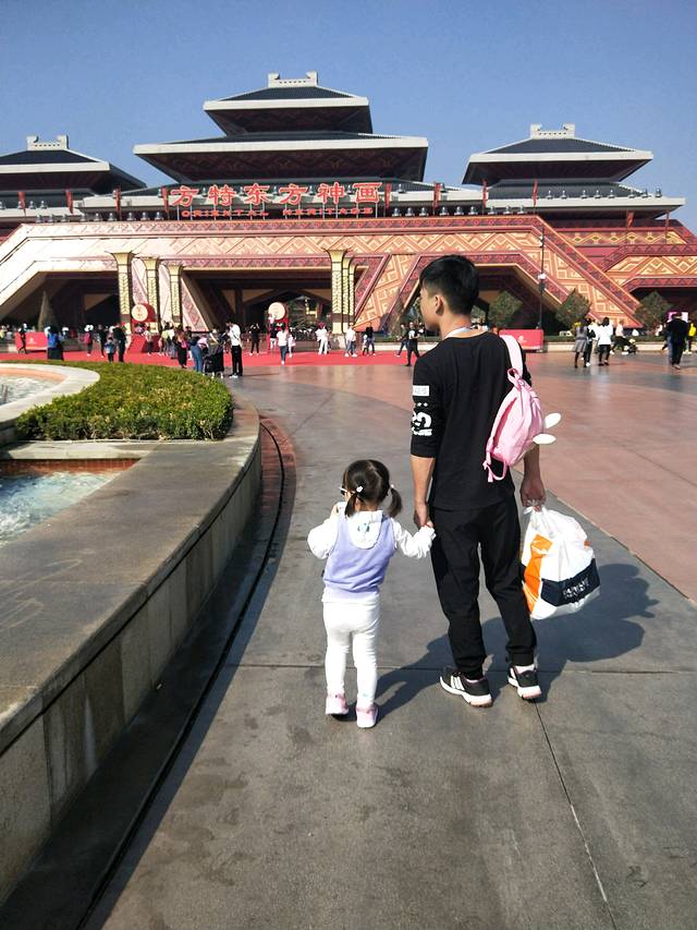 刷完剧场出来,差不多快11点钟。趁着大多数人吃饭的时间。我们决定兵分两路,爸爸们去打卡网红跳楼机“神州塔”,妈妈们带孩子们刷巨幕“九州神韵”。