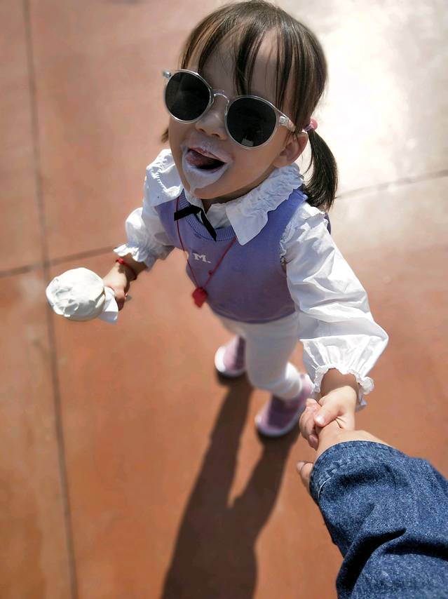 进园就直奔冰激凌店,小屁孩要求给她拍张有胡子的照片。