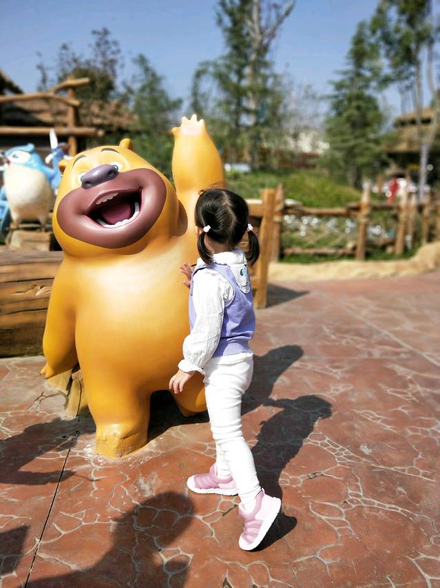 刷完小杯子,往前走就到了狗熊岭峡谷。因为很多项目都限身高,我们带着小屁孩就选择了熊出没大剧场。小屁孩爱极了剧场门口的十二星座熊熊。