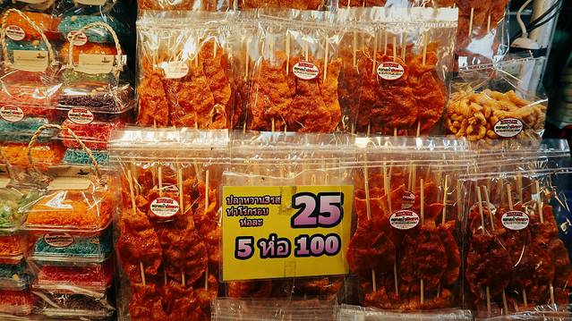 岸边很多的小吃店铺,各种让人食欲大开的海鲜烧烤、腌制鱼肉、泰式甜点小吃以及特色奶茶等等,简直是吃货的世界。