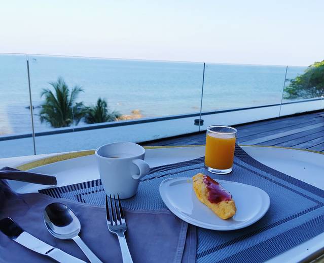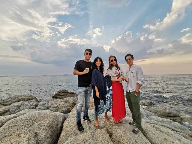 酒店的私人海滩很少人,我们几个就这样在礁石上,尝试泡杯“落日咖啡”,有时候旅行不一定只是用眼睛去感受,适时动手制作会让旅行的仪式感更好。恰好我们是一批极力寻求小众旅行方式的人,恰好咖啡好喝,景很美,大概芭提雅的海配落日咖啡就是这趟旅程最有情调的事。