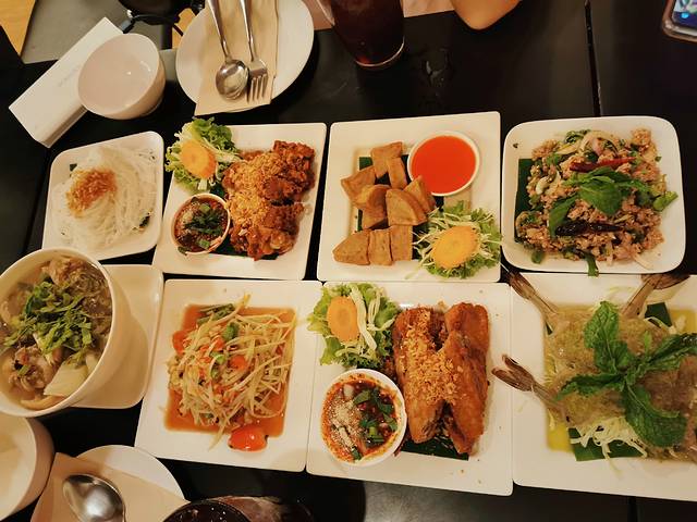 几乎每道菜都很好吃,辣猪肉末沙拉酸酸辣辣很爽口,冬阴功汤酸辣口味也十分好喝,炸豆腐和烤鸡是泰国东北的经典菜。