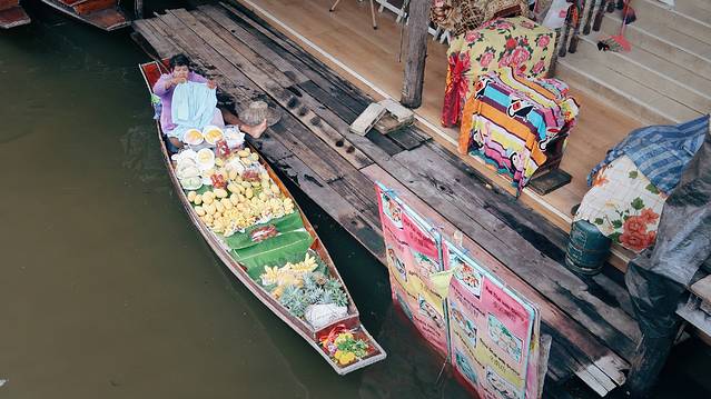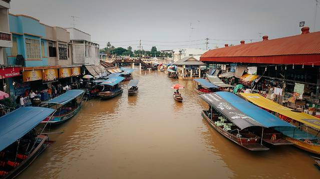 从曼谷驱车到夜功府需要两个小时,而美功铁道市场、丹嫩沙多水上市场和安帕瓦水上市场的三个景点间距离十几公里,选择报团或者像我们在夜功府自驾一日游就方便很多。