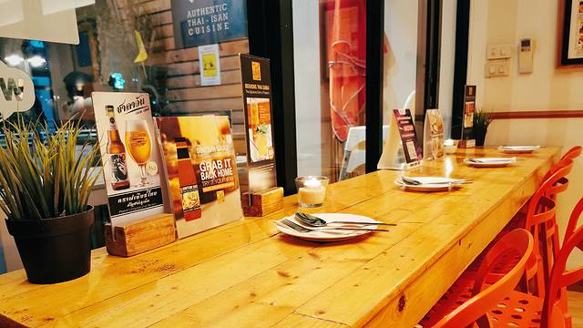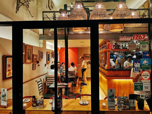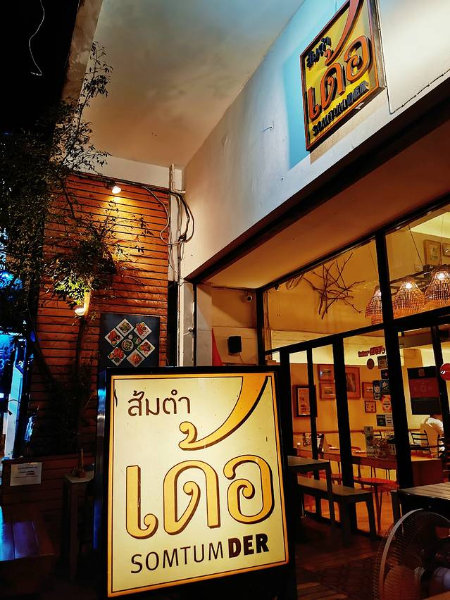 曼谷市中心街道分布不少有情调的小餐馆小酒吧,Somtum Der算是其中一家,它的环境是西式装潢的小店,两层小楼,暖黄色调的氛围,来餐厅的食客大多是外国人,特别有感觉。
