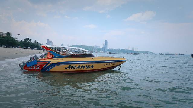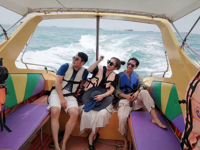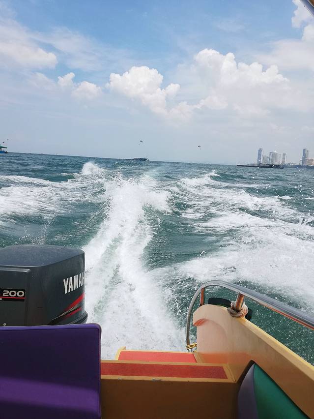 我们自驾游最自在的是可以根据行程随时退房,也不用担心行李问题,我们是第三天早上直接退房再自驾到芭提雅海滩边,可以把车停在路边或者餐厅的停车位上,然后走到沙滩上就可以看到有出租快艇的商家,直接问老板价格,如果觉得贵记得要砍价。这里提价是2000泰铢包一艘船,我们主动把游玩时间缩减就直接砍到1200泰铢,一圈下来真得很值了,重在体验嘛。