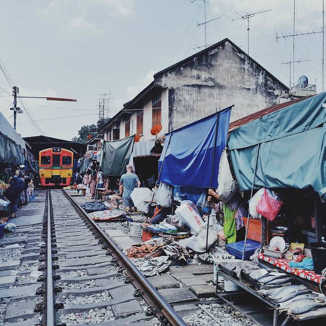 有看头的是这里有世界上唯一的铁道市场,当地人民会沿着铁轨两边摆摊,每当火车缓慢开来,他们迅速把摊位收好,火车走后,再撑开帐篷营业,有趣的民俗值得一看。