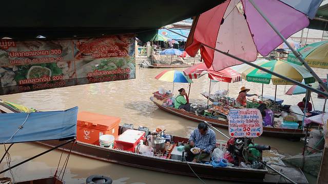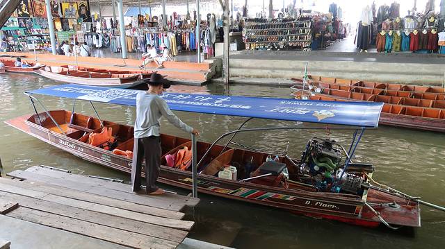 丹嫩沙多水上市场的船分为两种,一种是手摇船,一种是动力马达船,包一艘动力马达船需要2000泰铢,能乘坐6-8位游客,有船长带你游玩市场,用时2个半小时,还能靠岸在陆上集市逗留。