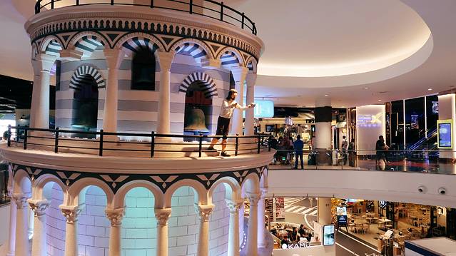 Terminal21以航站楼为主线,共六层,每层楼都设计了不同的主题,G层Paris巴黎、M层London伦敦、1层Italy意大利、2层Tokyo东京、3层San Francisco旧金山、4层Holly Wood好莱坞,就连厕所也有自己的主题!所以走在商场里面,某些场景和细节的打造能让你切身地感受到6个城市/国家的特色。