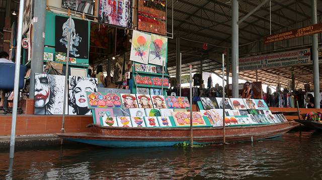 集市的艺术品非常多,当地人喜欢将椰子壳做成各种灯饰、手工艺品,有的甚至作为餐具,用椰壳盛菜、装配料和刀叉。泰国的象文化也能随处发觉,各种大象的艺术画作,精妙又好看,有趣的水上集市,丰富的生活画卷,如果你想体验泰国市井的生活,那丹嫩沙多水上市场就是一个必来的地方。