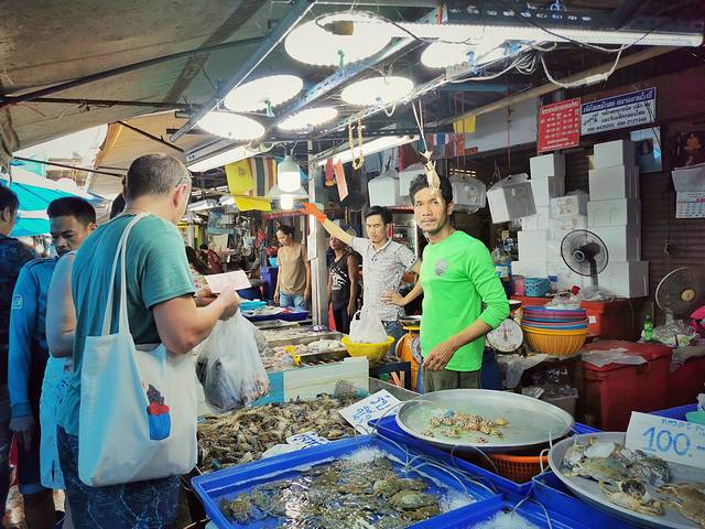 作为一个海滨城市,芭提雅的步行街大排档和餐馆上常能看见海鲜的出没,如果你想在芭提雅品尝到正宗的海鲜味,那大排档估计不是最佳的选择,因为价格贵也不能保证是最新鲜的海鲜。推荐芭提雅海鲜市场,这是当地最大最受欢迎的一个菜市场,便宜新鲜。