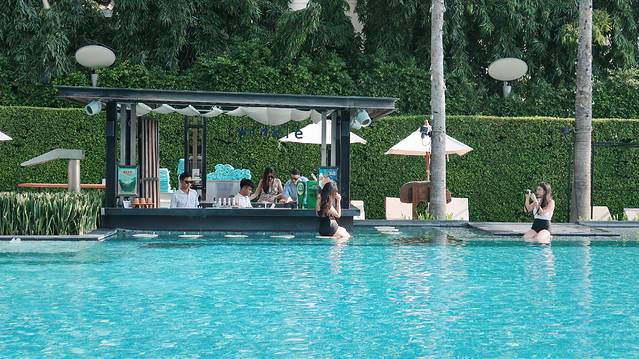 值得一提的是酒店的泳池和健身房设施很棒,露天的泳池视野开阔,并且设置舒适的躺椅,这里相对少人,尤其晚上在泳池游泳,很放松很惬意。
