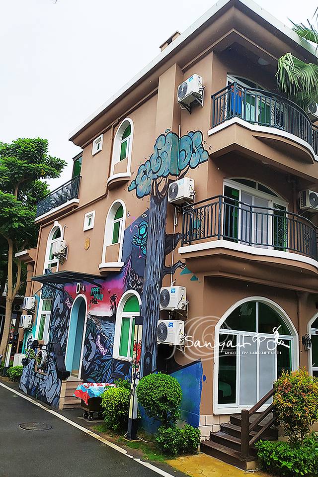 这回帮我预约“爱上”的小姑娘还推荐了另外一个很有爱的小众景点—梧桐树文创小镇,原先就是一个以涂鸦和布景为主的精品酒店,不少三亚的婚纱旅拍选择这里作为外景地,拍起来确实很好看,由于花样繁多,色彩缤纷,衣服怎么穿都能搭上色~