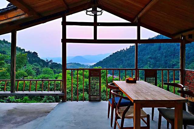 游玩了千岛湖已经将近傍晚,该到了寻找住宿的时候,查询了一下发现就近有座民宿叫仟陌间,就在山腰当中,融入在景色里面,看着图片早已心仪,于是找准位置方向,直接徒步前行,没多久就看到那家民宿的影子,和景色完美贴合。