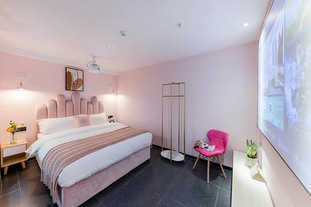 设计风格以粉色为主,配备100寸宽屏巨幕,3D动感电影将带给你听觉冲击与视觉盛宴。
