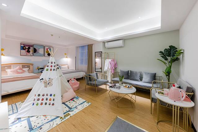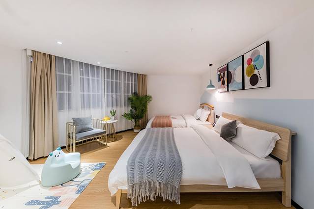 设计风格以清新可爱为主,我们特别为宝宝们准备了多种宝宝用品,等着您入住探索与发掘。