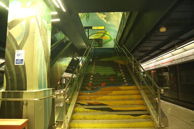 90度平视站厅的楼梯,便会发现一副完整的涂鸦作品分布在每一个台阶上。