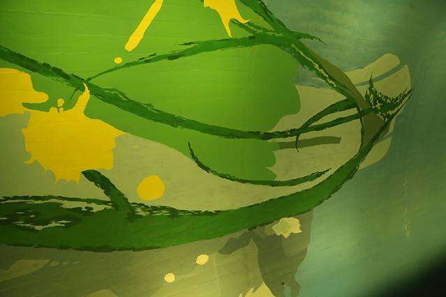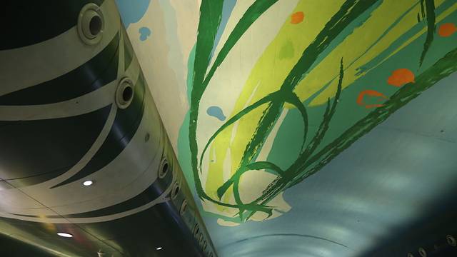 慢慢走上站台,一片绿色森林就这样缓缓映入眼帘,如梦似幻。整个站台四面墙都被绿色涂鸦包围。