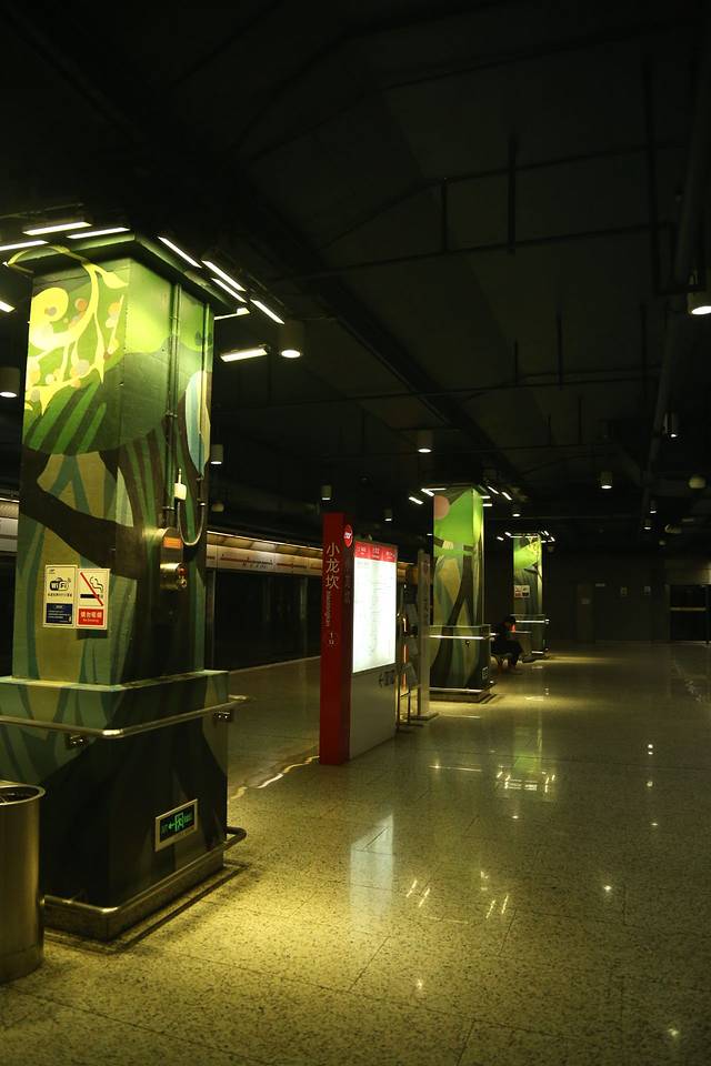 1、小龙坎站位于重庆轻轨1号线,踏出车门,就可以赫然看见几根拔地而起,直升天际的涂鸦“树干。