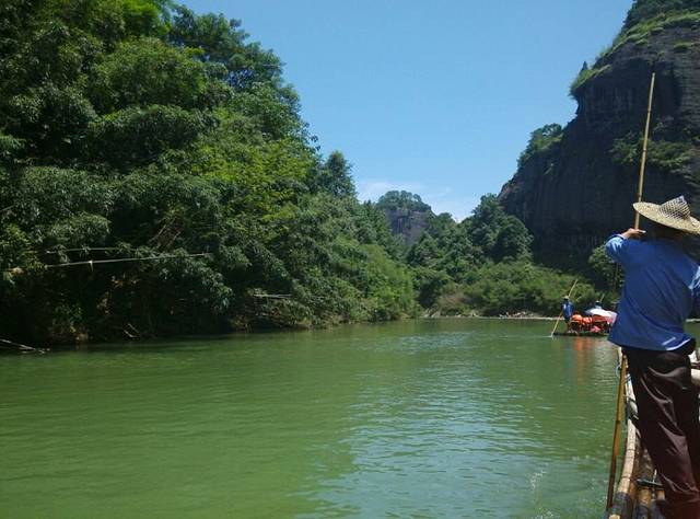 如果说来到武夷山只能游一个景点的话,那一定是九曲溪漂流,主要的漂流方式是竹筏漂流,沿途可以纵览武夷山大观,建议下午游玩,因为早上的水很凉,特别是带老人小孩去的话不太建议。给艄公小费,他会给我们介绍沿途的景点,为旅途增添许多趣味,也会让我们停留在某个景点拍照,如果不给的话,那这些都没有了哦!