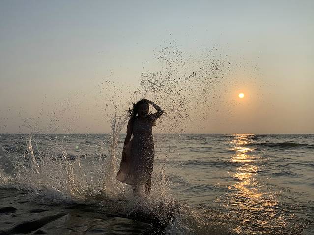 来几张绝美的日出图,由于涨潮,海边的礁石都没了,也没有大片大片的云彩,但还是美的呢