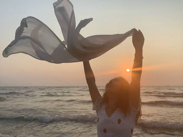 小蜗说要来点大妈风,丝巾舞起来~~哈哈哈,明明很美呀~
