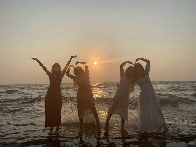 海浪很大,打湿了我们,咸咸的海水很凉爽, 四姐妹玩的很开心呀~~