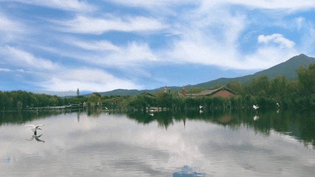 这里还有很多候鸟飞来,在湖上缓缓飞落,荡起一片涟漪。