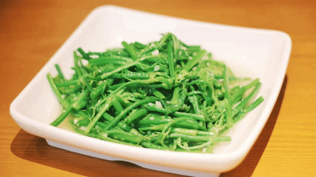 “水性杨花”其实是海花菜的茎部,用蒜泥炒制,吃起来很清爽,口感跟空心菜很像。