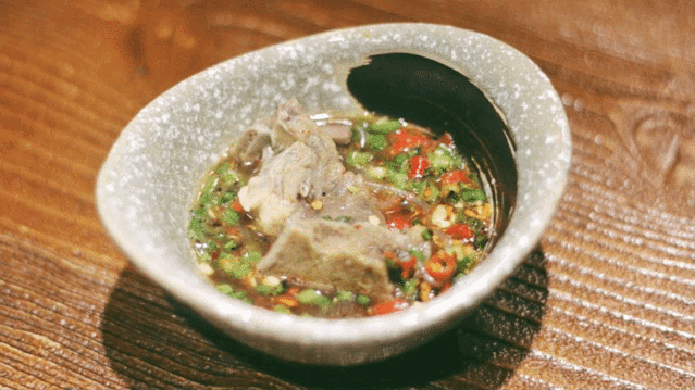排骨蘸上调配好的酱料,味道绝了。店里提供调料区,可以按自己的口味来调配酱料。