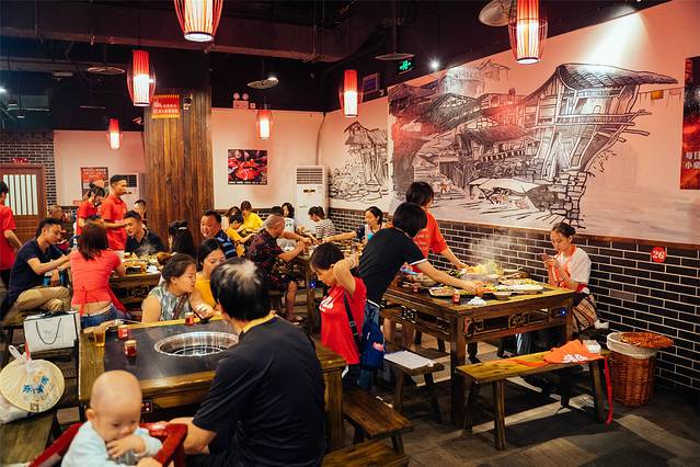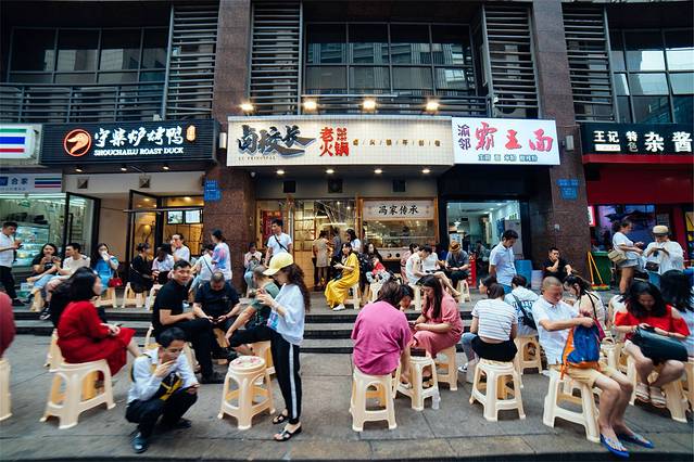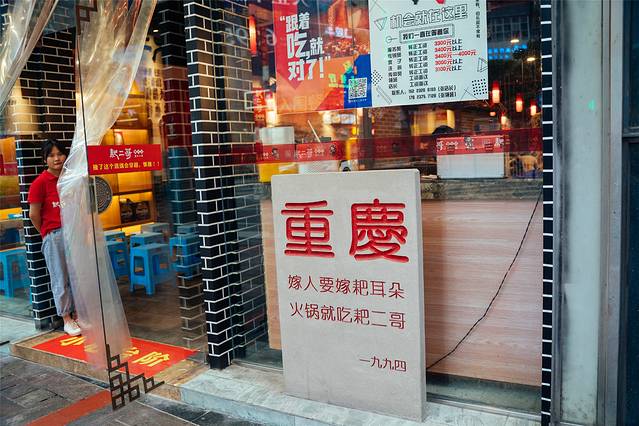 我们顺着纪念碑的北边走,步行也就十来分钟,就到了我们重庆之行的第一顿美食大餐店,一家火锅店——耙二哥老火锅,来重庆的第一餐不吃火锅怎么行!