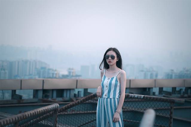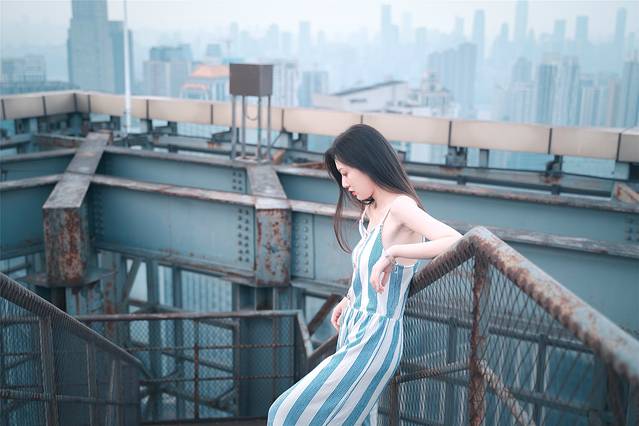 上来楼顶也不是特别费劲,楼顶整体是一种废弃工业风的感觉,金属感很强,凹造型后可以拍出很多有feel的照片,今天穿的裙子刚好和这个色系很搭。