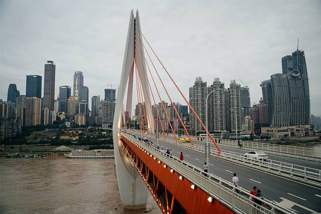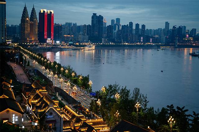 拍摄洪崖洞全景的最佳位置就是往千厮门大桥方向走的这一片,越往前人流也会逐渐减少,反而方便拍摄出更美的照片。
