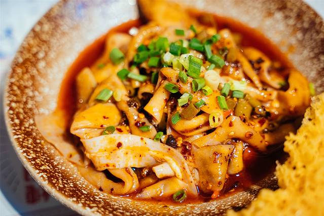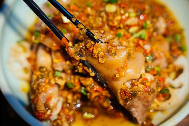 鲜椒蹄花是阿罗点的,吃完让我对猪蹄有了新的改观。蹄花软度恰到好处,没有软到失去它的筋道,Q弹有劲但不至于咬得费劲,满满的胶原蛋白完全不油腻,吃过都会爱上。