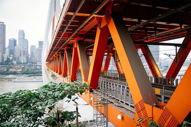 在这里可以近距离的观看东水门大桥和穿梭在长江之上的长江索道,同时这里也是全重庆看地铁距离最近、最震撼的地方,看着一旁的地铁在眼前刷刷的飞过,来去匆忙之间也是一道别样的风景线。